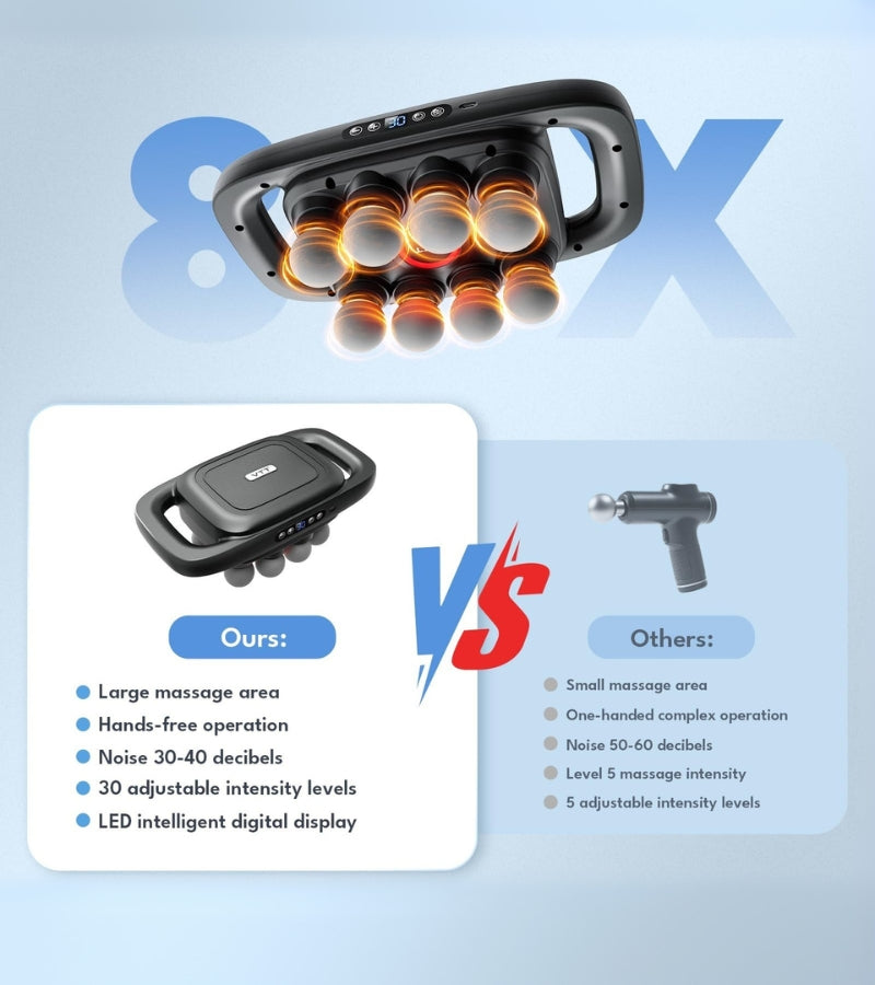 The 8 Heads Pup Massage Gun is the first percussive therapy device designed specifically for dogs, offering safe, quiet, and customizable muscle recovery for canines of all sizes and breeds.